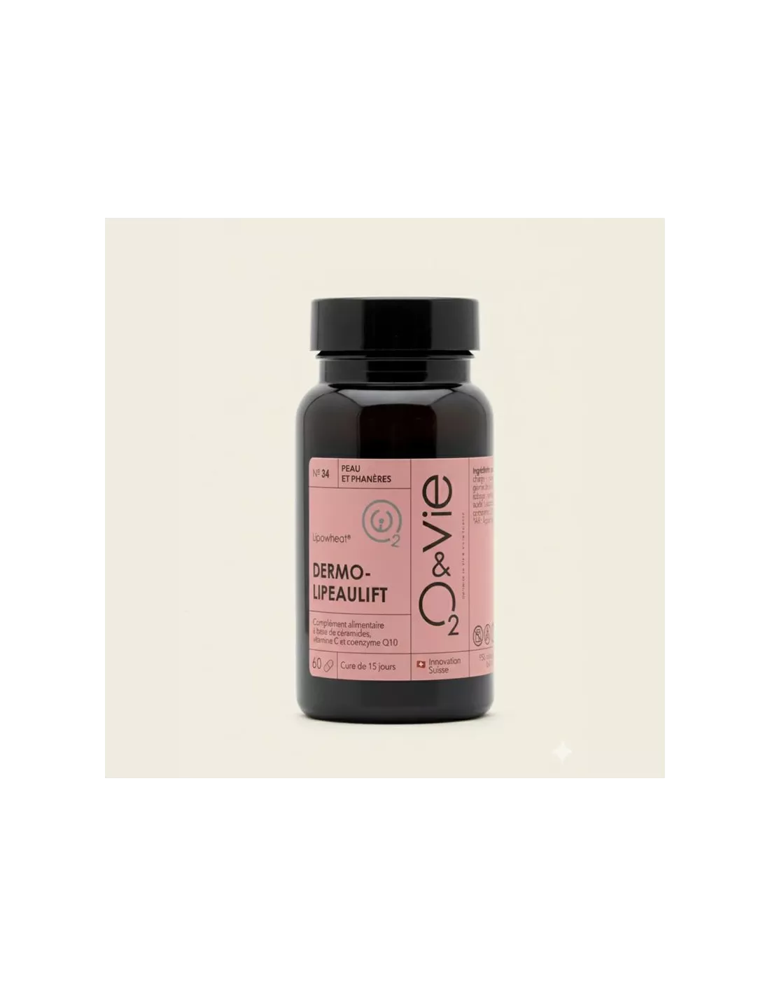 Ingrédients : Lipowheat™ (Agent de charge : phosphate dicalcique, extrait lipidique de germe de blé (Triticum aestivum), agent d'enrobage : hydroxypropylméthylcellulose, acide l-ascorbique (vitamine C.), coenzyme Q10.Peut contenir des traces de gluten.